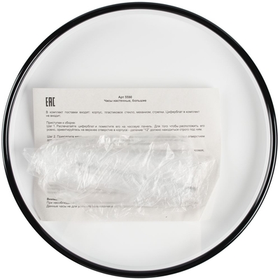 Циферблат в комплект не входит, но его можно изготовить в индивидуальном дизайне методом полноцветной печати. Подготовьте макет согласно конструктору, напечатайте его на тонком плотном картоне, вырежьте по контуру и аккуратно поместите в часы. Чтобы разобрать часы, аккуратно отодвиньте пластиковые защелки на корпусе по одной и приподнимите заднюю крышку. Для упора можно использовать ребра-полоски на задней крышке.
