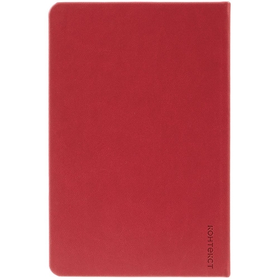 Ежедневник с твердой обложкой, выполнен из материала Latte, красный РР, дополнен ляссе в цвет обложки.