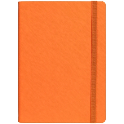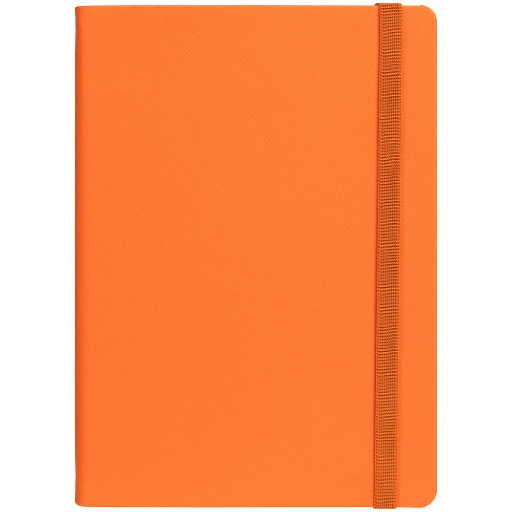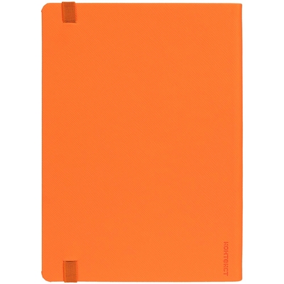 Ежедневник с твердой обложкой выполнен из материала Nice Touch, оранжевый ОО, и дополнен резинкой шириной 1 см и ляссе оранжевого цвета.