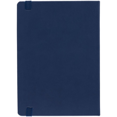 Ежедневник с твердой обложкой, выполнен из материала Latte, темно-синий ХХ, обрез темно-синего цвета, дополнен резинкой и ляссе темно-синего цвета.