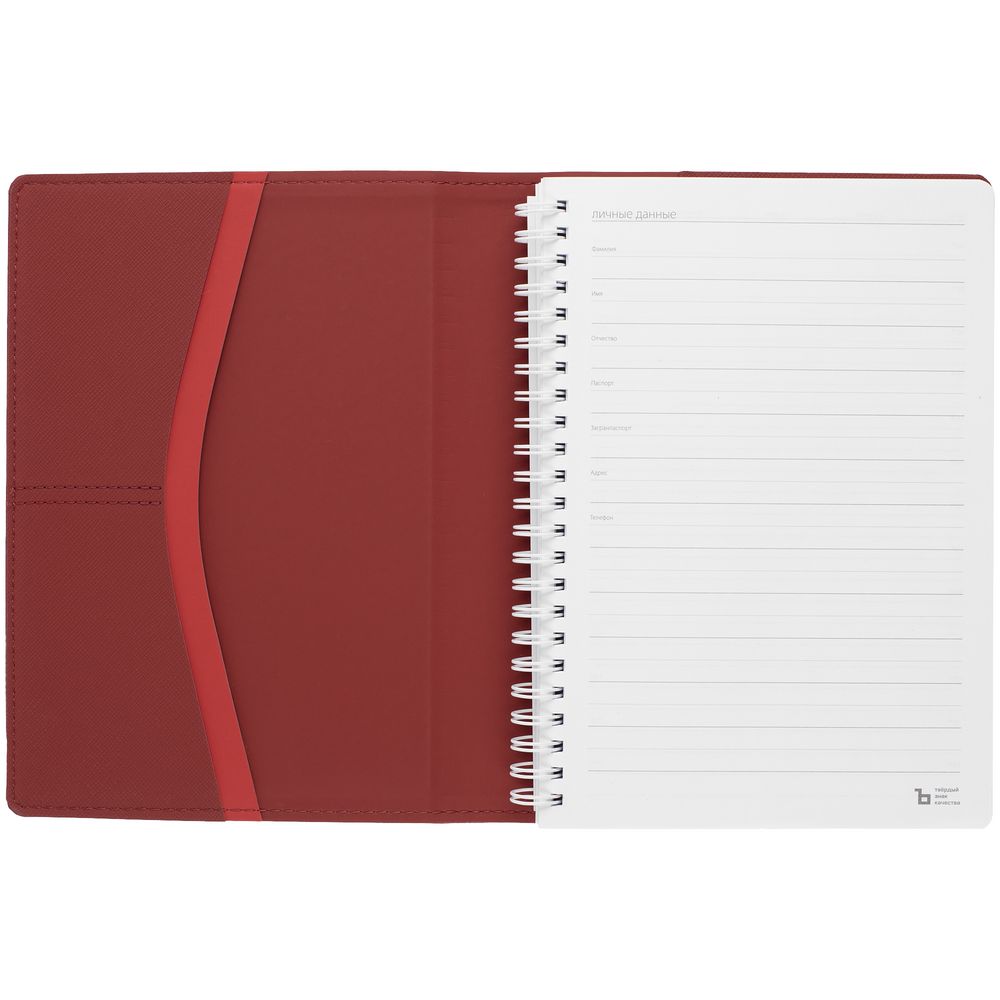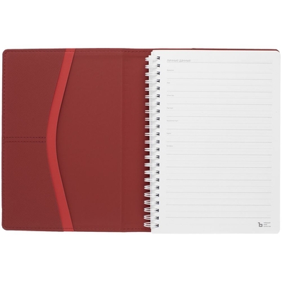 Ежедневник с блоком на пружине в твердой обложке, выполнен из материалов Nice Touch, Soft Touch и Soft Touch Ultra красный.