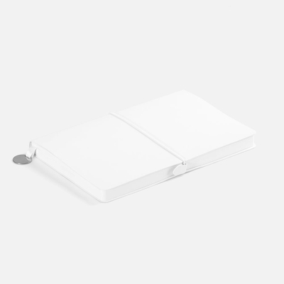 Ежедневник с гибкой обложкой, выполнен из материала Waltz, белый BB, дополнен ляссе в цвет обложки с металлическим шильдом.