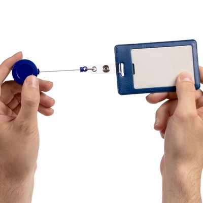 Ретрактор крепится к одежде, а с другой стороны можно поместить бейдж, визитку или магнитную карту. В корпусе спрятан сворачивающийся шнур, который позволяет при необходимости демонстрировать содержимое держателя, не снимая его.