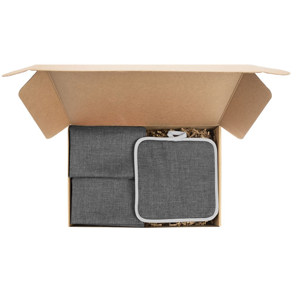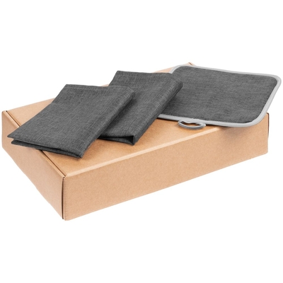 Материал салфетка - полиэстер 100%; прихватка - полиэстер 100%; коробка - микрогофрокартон, плотность 385 г/м²