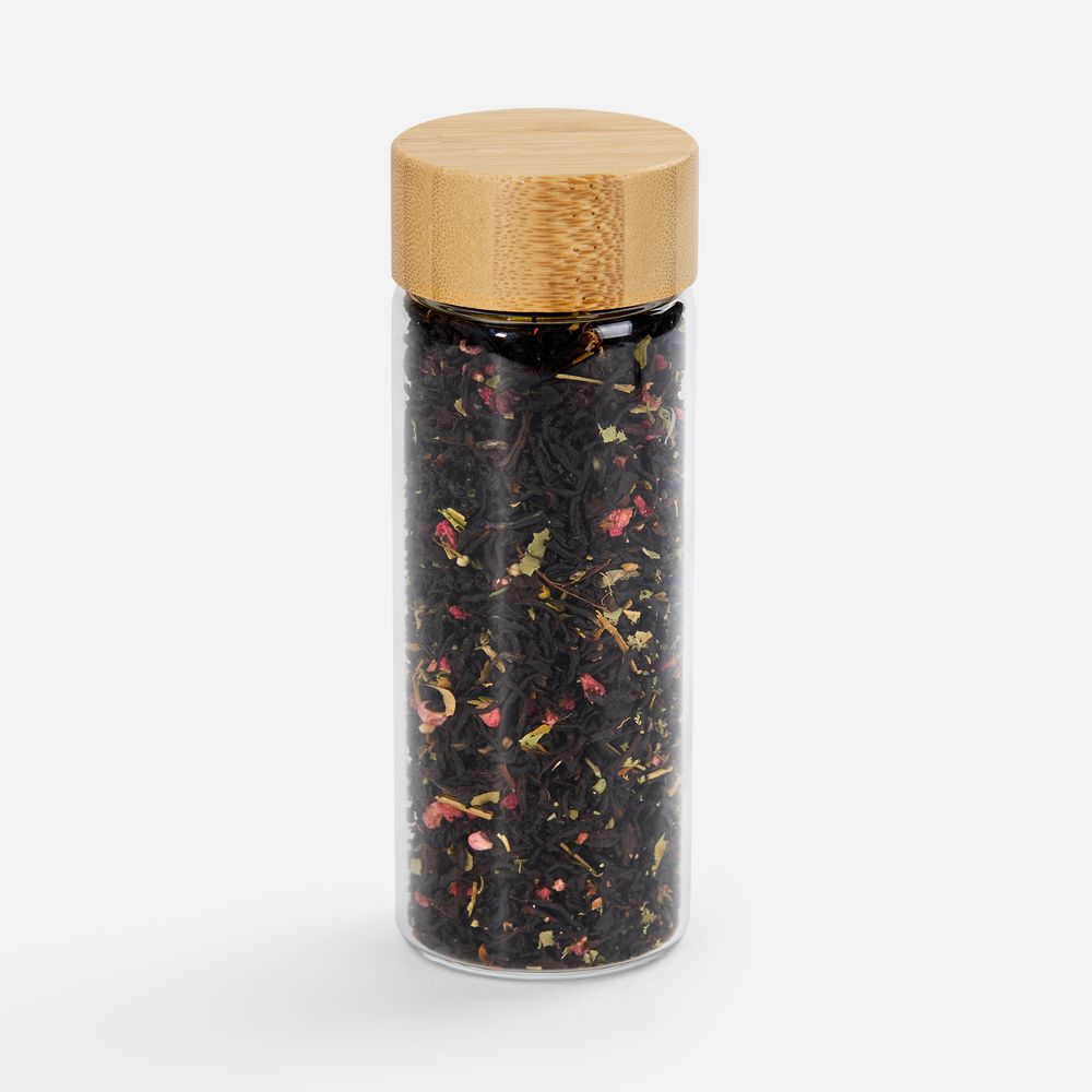 - Чай черный «Малина с медом и чабрецом» Состав: чай черный индийский листовой, малина сублимированная кусочки, листья ежевики, цветы липы, чабрец, ароматизатор «малина», ароматизатор «мед»Вес нетто: 40 г