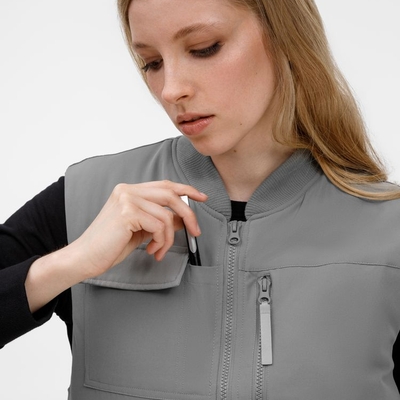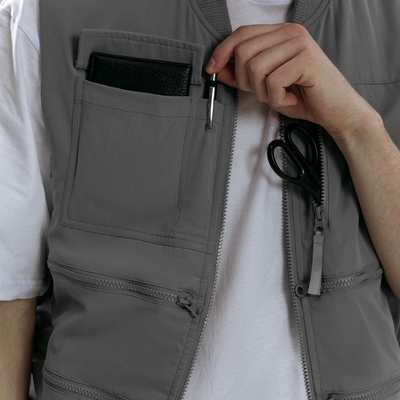 - 8 функциональных карманов, из них на передней части: 1 карман с клапаном для документов/рации, 1 карман для ручки, 5 вместительных на молнии, а так же 1 карман под планшет на молнии на спинке жилета