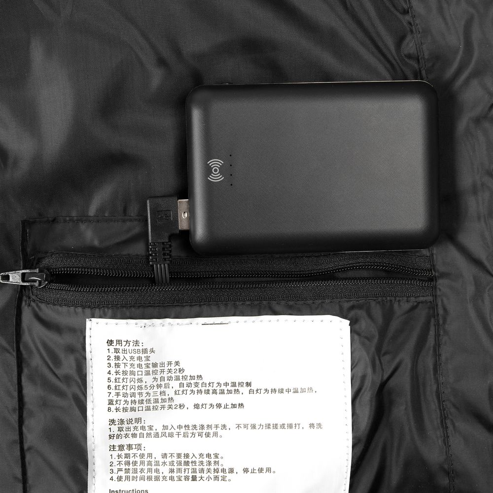 1. Подключите внешний аккумулятор к кабелю во внутреннем кармане куртки.2. Нажмите и удерживайте кнопку нагрева в течение 2-5 секунд, пока не загорится цветовой индикатор.3. Нажмите еще раз на кнопку, чтобы выбрать температурный режим.4. Чтобы выключить функцию обогрева, нажмите на кнопку и удерживайте в течение 2-5 секунд.