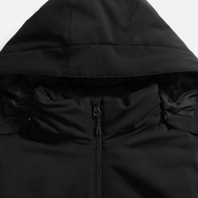 - Отстегивающийся капюшон с утяжкой и кнопками для плотного прилегания и защиты горла