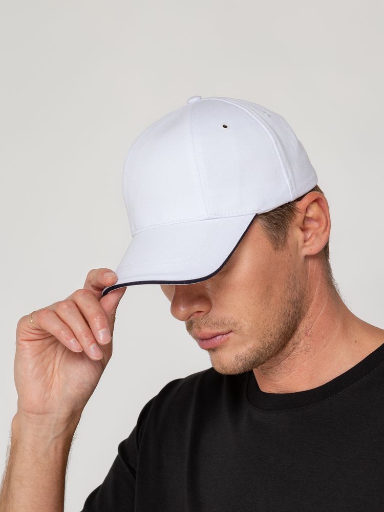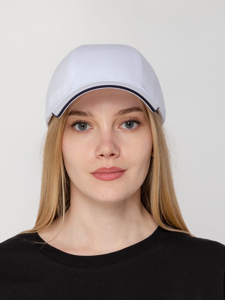 Бейсболка Canopy, белая с темно-синим кантом