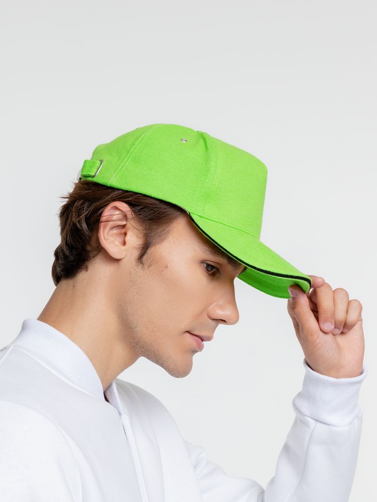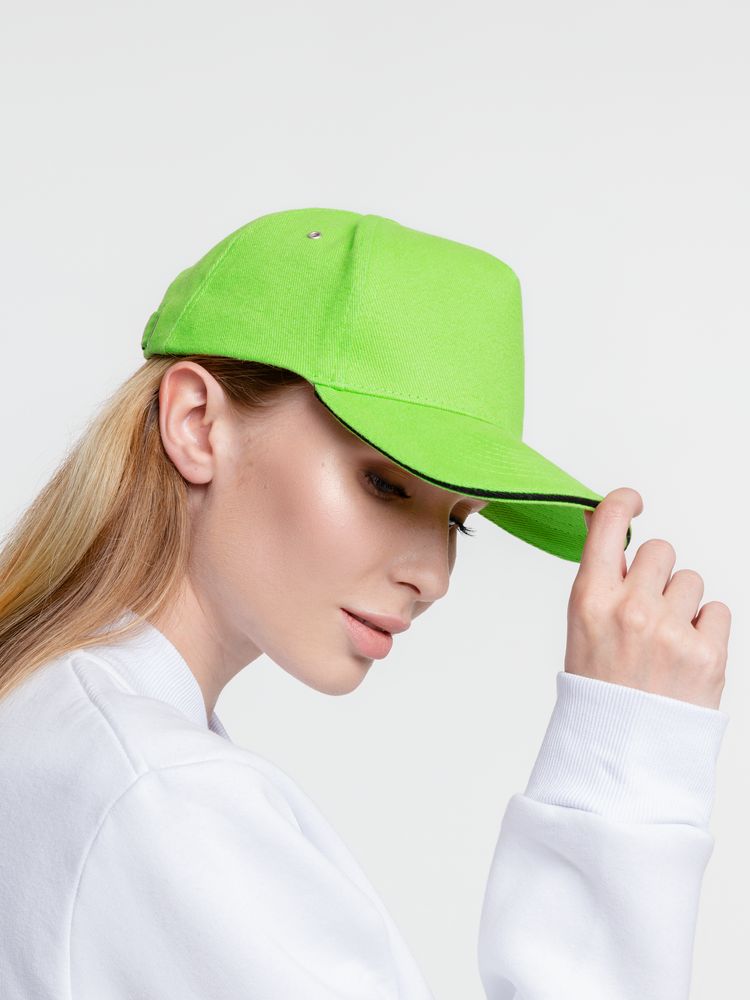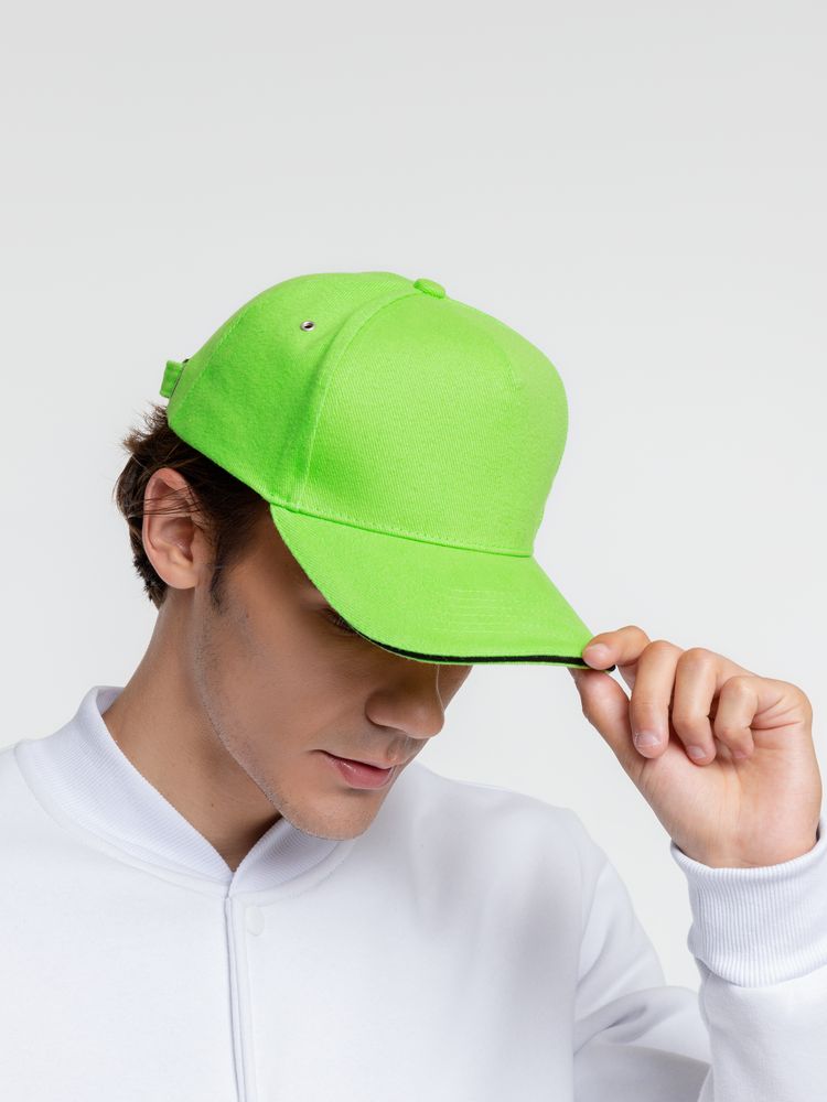 Бейсболка Classic, зеленое яблоко с черным кантом