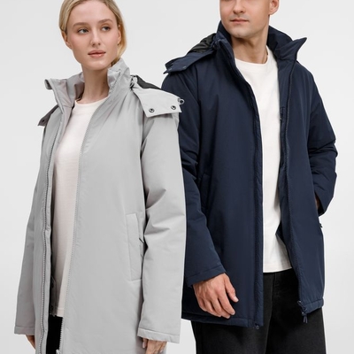 - Отстегивающийся капюшон с утяжкой и кнопками для плотного прилегания и защиты горла