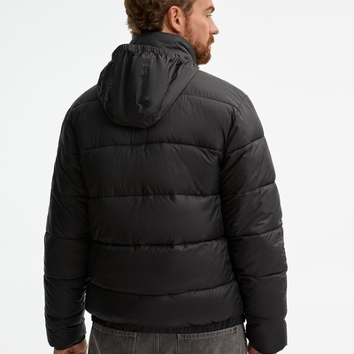 - Капюшон без подкладки убирается в воротник и плотно фиксируется на потайные кнопки