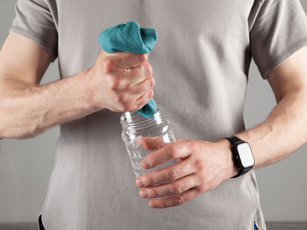 Материал полотенце - полиэстер 100%; бутылка - пластик
