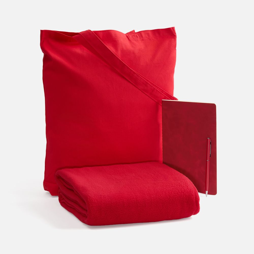 Набор с основной канцелярией и пледом — классика жанра в уютном исполнении. С компактным блокнотом под рукой будет удобно делать заметки в любое время, а легкий флисовый плед позволит выразить самые теплые пожелания.