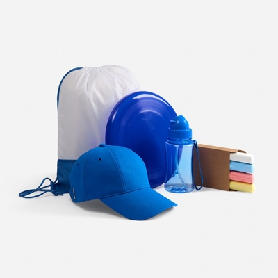 Материал картон; бутылка, тарелка - пластик; бейсболка - хлопок 100%, плотность 260 г/м²; рюкзак - полиэстер 100%, 210D