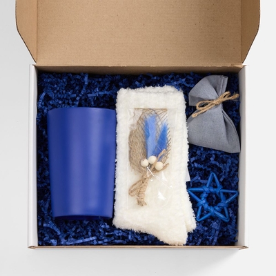 Материал кружка - фарфор; покрытие софт-тач; носки - полиэстер 100%; упаковка для набора - микрогофрокартон, лен, джут, бумага