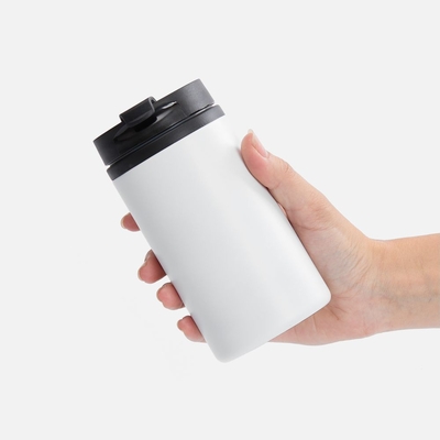 Двухслойная конструкция из пищевого пластика внутри и нержавеющей стали снаружи. Герметичная завинчивающаяся крышка с откидным клапаном для питья.