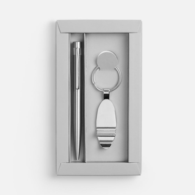Материал ручка - сталь, переработанная; брелок - металл, никелирование; коробка - картон