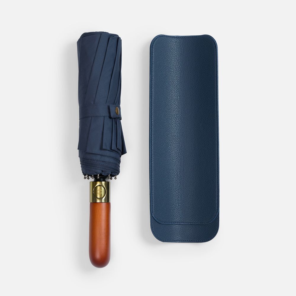 - Деревянная прямая ручка с кнопкой открытия и закрытия зонта